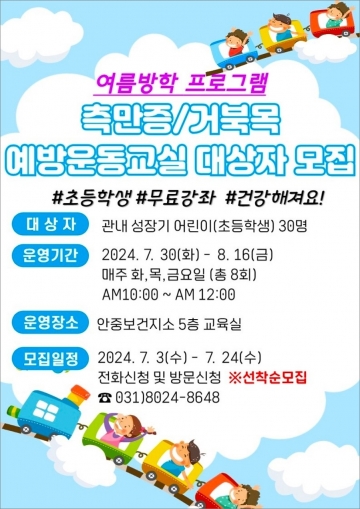과도한 미디어 노출과 급격한 신체활동 감소로 체력 저하 및 근골격계질환(척추측만증 및 거북목 등)의 위험성이 있는 어린이를 대상으로 여름방학 기간인 7월 30일부터 8월 16일까지 3주간 총 8회에 걸쳐 진행된다.