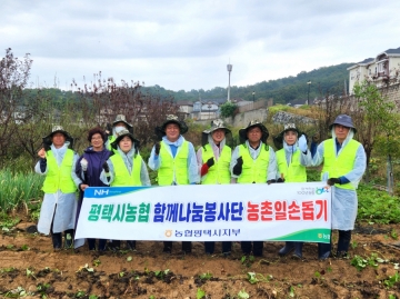NH농협 평택시지부(지부장 윤주섭) 임직원으로 구성된 ‘평택시 농협 함께나눔 봉사단’ 10여 명은 지난 18일 평택시 현덕면 덕목리에서 농가 일손 돕기를 실시했다.