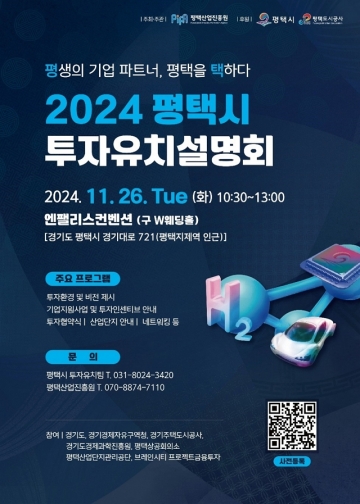 평택시(시장 정장선)는 11월 26일 평택지제역 인근 엔팰리스컨벤션에서 투자유치설명회를 개최한다.