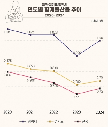 출산율 저하가 사회적 문제로 대두되고 있는 가운데 평택시(시장 정장선)의 2024년 합계출산율이 직전 연도보다 반등한 1.0명을 기록했다.