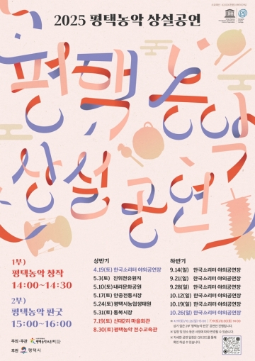 ‘2025년 평택농악 상설공연’은 평택농악보존회가 주최·주관하고 평택시가 후원하는 사업의 일환으로 진행되며, 평택시의 유일한 국가무형유산인 평택농악의 가치를 알리면서 시민들에게 전통문화를 보다 가까이에서 즐길 기회를 제공한다.