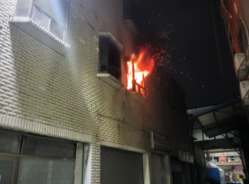 ▲ 여관 객실에서 화염이 솟구치고 있다. <제공 = 송탄소방서>