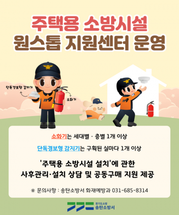 평택시 송탄소방서(서장 김승남)는 주택용 소방시설 설치 촉진을 위한 ‘원스톱 지원센터’를 운영한다고 17일 밝혔다.