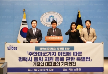 더불어민주당 평택시 국회의원들이 오는 2026년 일몰 예정인 「주한미군기지 이전에 따른 평택시 등의 지원 등에 관한 특별법(이하 평택지원특별법)」의 유효기간 연장을 위해 함께 힘을 모았다.