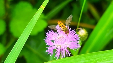 ▲ 국화과의 두해살이풀인 조뱅이 꽃을 찾은 호리꽃등에(2021.6.5 웃다리문화촌)