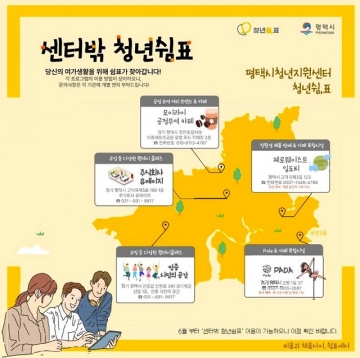 ‘센터밖 청년쉼표’는 현재 평택역 인근에 있는 청년 공간인 ‘청년쉼,표’ 외에 추가로 유휴공간을 확보해 청년들의 자유로운 공동체 활동에 대한 임차료와 프로그램 사업비를 지원하는 사업이다.