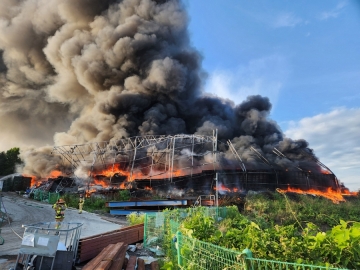 외부에 적재된 폐플라스틱 및 합성수지류 약 30여 톤 불에 타