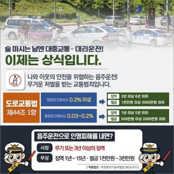 경찰청 관계자는 "음주운전으로 사고가 발생하면 특가법상 위험운전치사상죄로 가중 처벌하고, 상습 음주운전자의 차량은 압수하는 등 강력하게 처벌하며, 도로교통법에 따라 운전면허도 취소하므로 휴가철 들뜬 분위기에 편승한 음주운전이 없길 바란다“고 당부했다.
