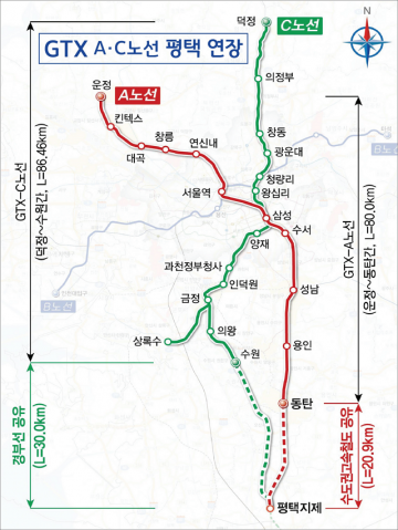 수도권광역급행철도 GTX-A·C 평택 연장 노선도