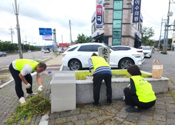 ‘안녕리 표석’ 주변에서 환경 정화 활동 중인 연구소 회원들