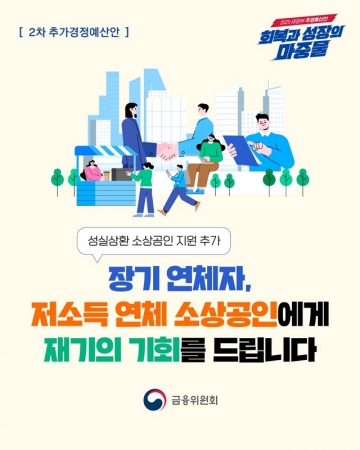 채무조정 관련 주무 부서인 금융위원회에 따르면 이번 2차 추경 규모는 1조1,000억 원이다. 장기 연체채권 소각 프로그램에 4,000억 원, 소상공인·자영업자 채무조정 프로그램에 7,000억 원을 투입한다.