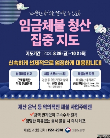 이번 지도 기간은 예년과 달리 운영 기간을 2배로 확대(기존 3주→6주)하고, 체불 발생 시에는 신속하고 엄정하게 대응한다는 것이 특징이다.