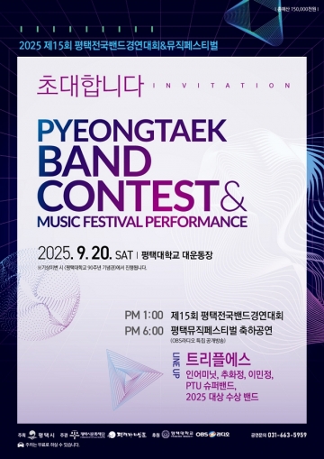한편 오후 6시부터 진행되는 평택뮤직페스티벌 축하공연인 ‘OBS라디오 특집 공개방송’에는 2025 평택전국밴드경연대회 대상을 수상한 밴드와 트리플에스, 인어미닛, 추화정, 이민정, PTU 슈퍼밴드 등 인기 연예인이 출연해 시민들에게 가을의 정취와 멋진 음악을 선사한다.