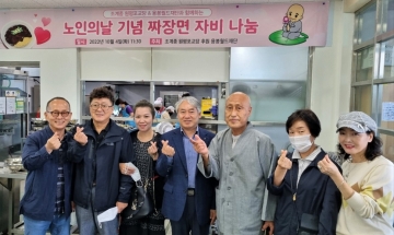 평택팽성노인복지관(관장 이원형)은 지난 4일(화) 평택원평포교당에서 주최하고 용봉월드재단(이사장 원명스님)에서 후원하는 노인의날 기념 ‘짜장면 자비 나눔’을 실시했다고 밝혔다.