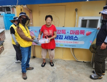▲ 가정 상비약을 전달하고 있는 경기행복마을 관리소 지킴이들