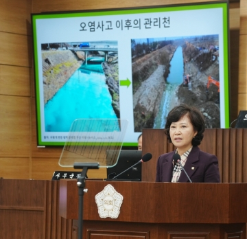 본 의원은 지난 1월에 발생한 관리천 오염 사고와 관련하여 이후 생태적 접근을 통한 수생태계 복원대책에 관해 제언을 드리기 위해 이 자리에 섰습니다.