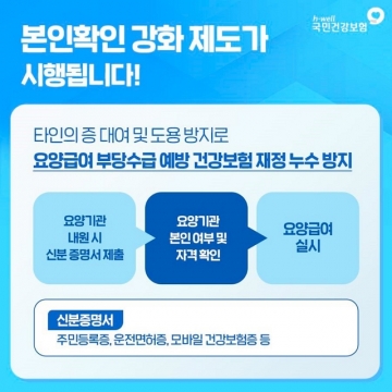 이에 따라 앞으로 병의원에서 건강보험으로 진료받을 때에는 주민등록증, 운전면허증 등 사진이 붙어 있고 주민등록번호 또는 외국인등록번호가 포함돼 본인임을 확인할 수 있는 증명서나 서류를 제시해야 하고, 신분증이 없으면 온라인에서 모바일 건강보험증을 내려받아 건보 자격 여부를 인증해 제시해야 한다.