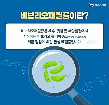 비브리오패혈증에 감염되면 급성 발열, 오한, 혈압 저하, 복통, 구토 등의 증상이 동반되고 증상 시작 후 24시간 내 다리에 발진, 부종, 수포 등이 발생하며, 이러한 증상이 나타나면 즉시 병원에 방문해 적절한 치료를 받아야 한다.