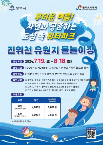 평택시(시장 정장선)는 무더운 여름철 시원한 물놀이와 수변 오토캠핑을 동시에 즐길 수 있는 진위천유원지 물놀이장을 7월 19일 개장해 8월 18일까지 운영한다고 밝혔다.