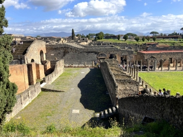 그간 말로만 듣던 폼페이의 잔해를 마주한 느낌이야말로 만감이 교차하더라는 표현이 어울릴 법하다. 상상을 가미한 영화처럼 잘 나가던 인간들이 맞이한 최후의 날을 체감하진 못할지라도 참혹한 과거사를 돌이켜본 것만으로도 재앙은 늘 미래형이다. 설마설마하던 일이 벌어진 화산 폭발 현장에서 화려한 도시는 흔적도 없이 사라지고 극치를 치닫던 애정행각은 설화가 되어버렸다. 말초적 감도를 높이려는 영상물이야 애써 부모의 복수와 자신의 연인을 지켜내기 위해 생목숨을 건다지만 결투 중 도주할 틈새도 없이 쏟아지는 용암과 화산재에 나름 힘깨나 쓴다는 군상마저 속수무책일 수밖에는 별도리가 있었으랴. AD 79년 로마의 도시를 자처하던 식민지는 그렇게 속절없이 잔혹사에 묻히고 말았으니, 잘 닦은 도로를 따라 도시계획에 의한 상하수도시설까지 갖추고도 온갖 죄악상의 제물로써 오늘날 길손들 앞에 그 일부를 드러낸 참이다. 가장 놀라운 실물은 수세식 화장실. 현재 공개된 실상만 갖고도 방탕한 생활상을 속속들이 짐작할 수 있거늘 계속 발굴 중이라니 범죄사의 종착역은 어딜지 솔직히 두렵기까지 하다.