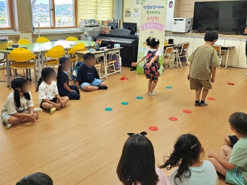 ‘건강한 돌봄놀이터’는 아동의 건강한 식습관 형성 및 신체 활동량 증진을 위한 프로그램으로, 표준교재를 활용한 체험형 영양교육과 교구를 이용한 놀이형 신체 교육으로 아동의 흥미와 눈높이에 맞게 구성되어 진행된다.