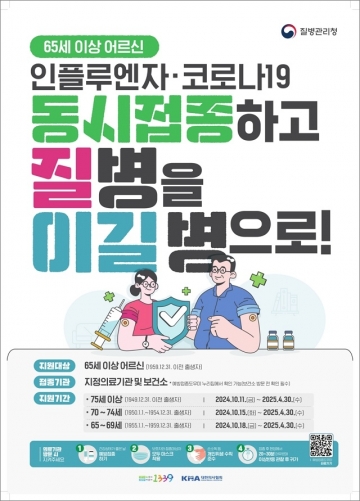 지영미 질병청장은 “올겨울 코로나19 예방을 위해 고위험군은 신규 백신으로 접종하기를 권고하며, 65세 이상 어르신들은 한 번의 방문으로 더욱 편리하게 코로나19와 인플루엔자 백신을 동시 접종하길 바란다”고 당부했다.