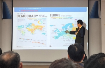 ▲ ‘한미동맹 발전 방안’ 주제로 특강을 하고 있는 남성욱 원장