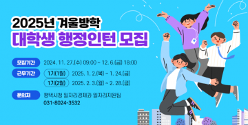 평택시(시장 정장선)는 11월 27일부터 방학 동안 시청, 출장소 및 읍·면·동 행정복지센터 등 공공기관에서 근무할 ‘2025년 겨울방학 대학생 행정인턴’을 모집한다.