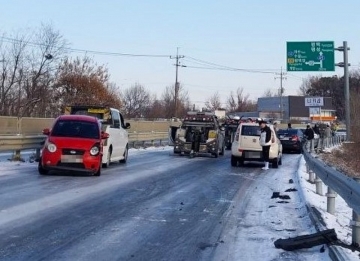 전날 내린 눈으로 연쇄 추돌 일으켜 “블랙아이스 조심해야”