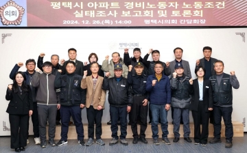 유승영 평택시의회 의원이 주관한 ‘평택시 아파트 경비노동자 노동조건 실태조사 보고회 및 토론회’가 지난해 12월 26일 평택시의회 3층 간담회장에서 개최됐다.