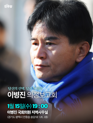 더불어민주당 이병진 국회의원(평택을)이 등원 후 첫 의정보고회를 개최한다. 이병진 의원실은 오는 15일(수) 오후 7시, 평택시 안중읍 지역사무소에서 평택시민에게 2024년 의정활동 성과를 직접 보고한다.