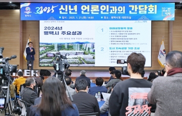평택시(시장 정장선)가 2025년 을미년을 맞아 21일(화) 오후 2시 평택시청 대회의실에서 신년 언론인 간담회를 개최해 새해 주요 시정 방향을 밝혔다.
