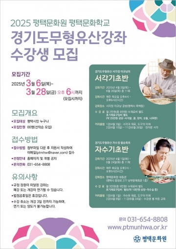 평택문화원은 지역문화 정체성을 정립하고 시민의 문화예술 향유 기회를 확대하기 위해 평택시민을 대상으로 2025년 평택문화원 평택문화학교 수강생을 모집한다.