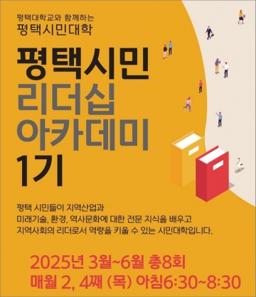 평택대학교(총장 이동현) 평생교육원은 3월 13일부터 시민단체와 협력하여 지역사회의 리더 양성과 평택시민 참여를 활성화하기 위한 혁신적 교육 프로그램인 평택시민 리더십아카데미를 진행한다.