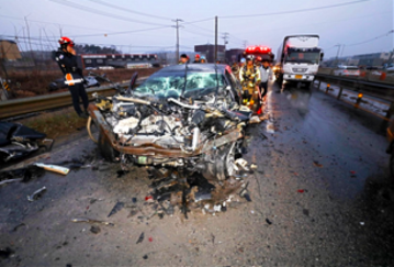 화물차 후미 들이받은 승용차 화재… 운전자 1명 사망