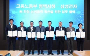고용노동부 평택지청(지청장 이경환)은 지난 9일 오후 2시, 삼성전자 평택캠퍼스에서 삼성전자와 원·하청 상생협력 협약을 체결했다.