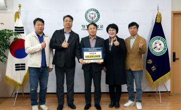 ▲ 교육부 지원금 1억 원을 수여받은 이동현(가운데) 총장