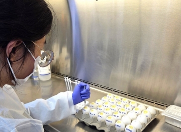 ▲ 동물위생시험소에서 종란 접종을 하고 있다.