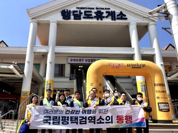 국립평택검역소(소장 이종곤)는 4월 28일(월) 질병관리청 충청권질병대응센터(센터장 이주현)와 함께 서해안 고속도로 행담도 휴게소를 찾아 감염병 예방 홍보 캠페인을 실시했다.