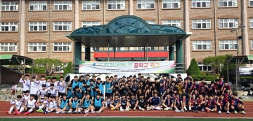▲ 세교중 운동장에서 진행된 축구 경기 기념사진