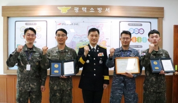 평택소방서(서장 김진학)는 5월 26일, 최근 화재 초기 대응에 크게 기여한 해군 2함대 소속 군인들에게 표창과 감사패를 수여했다고 밝혔다.