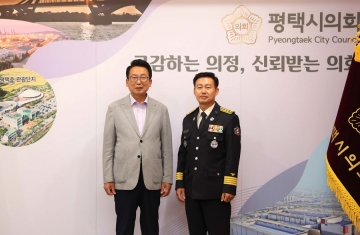 평택시의회 강정구 의장은 2일, 시의회 의장실에서 홍의선 송탄소방서장을 접견해 시민의 생명과 안전을 위해 최선을 다해 달라고 당부했다.