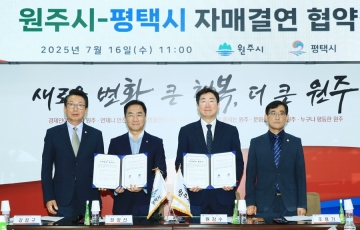 원강수 원주시장은 “평택시와의 자매결연은 행정 협력뿐만 아니라 민간 교류까지 아우르는 상생 전략”이라며 “두 지역이 가진 자원을 바탕으로 공동 발전의 시너지를 창출하겠다”고 밝혔다.