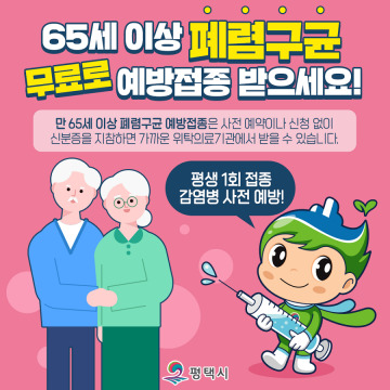 평택시, 65세 이상 어르신 ‘폐렴구균 예방접종’ 지원