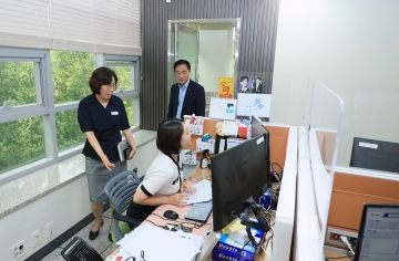 정장선 평택시장은 7월 23일 ‘평택시 민원상담 콜센터’를 방문해 시민 응대 최일선에서 있는 상담원들을 격려하고, 상담 현장의 운영 상황을 점검하면서 직원들과 소통의 시간을 가졌다.