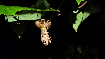 지난 8월 3일, 주룩주룩 적잖은 비가 내렸음에도 매미의 우화는 멈추지 않았다. 비 오는 밤에는 거미, 개미, 사마귀, 새 등 주요 천적의 활동이 줄어들어 오히려 안전하다. 습한 공기는 날개가 너무 빨리 마르는 것을 막아 변형을 줄여 주기도 한다. 땅속에서 이미 시기를 결정한 매미는 주변 환경에 크게 구애받지 않고 한 치의 망설임도 없이 묵은 껍질을 벗는다.