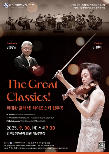 평택을 대표하는 사단법인 소사벌챔버오케스트라(단장·지휘자 김동일)가 오는 9월 30일(화) 저녁 7시 30분, 평택남부문예회관 대공연장에서 정기연주회 ‘The Great Classics!’를 개최한다.