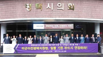 이어 “평택은 세계 최대 규모의 미군기지가 위치한 도시이자 국가안보의 전초기지로서 역할과 부담을 일상적으로 감당하고 있음에도 불구하고 법적·재정적 지원이 중단된다면, 평택은 개발 격차 문제를 감당해야 하고, 이는 국가안보에도 중대한 위기를 초래할 수 있다”며 “국회와 정부는 지속적이고 안정적인 지원체계 마련을 위해 「미군이전평택지원법」의 일몰 기한을 연장해야 한다”고 요구했다.