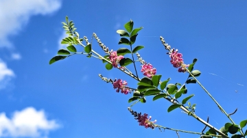 꽃이 ‘이리의 어금니’처럼 생겼다는 뜻을 지닌 낭아초(狼牙草)가 핑크빛 촛대 모양의 꽃을 올려 오래전부터 푸른부전나비를 불러들이고 있다. 여름에 피는 꽃이지만 곁가지에서도 계속 꽃을 피우기에, 청명한 가을 하늘을 배경으로 분홍빛 꽃송이가 이어지고 있다. 파란 하늘과 하얀 구름 아래 바람을 타고 흔들리는 꽃은 가을에도 여전히 생동감을 품는다.